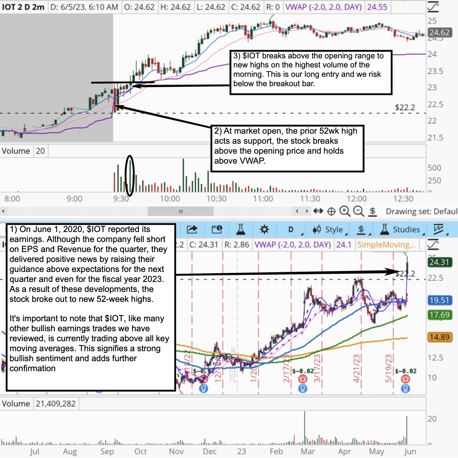 If you’ve been paying close attention, you’ll notice that this $IOT earnings trade incorporates elements from multiple intraday setups we have previously discussed. Let’s dive into these key components that contribute to the strength of this trade.