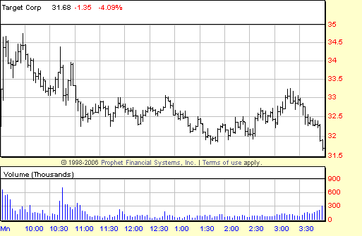 I only fade when I have determined a stock is at least two standard deviations from its correct temporary price (this is based upon my experience as a trader and not mathematically). But to determine this I must either have watched it trade the past few days, which NYU had not done, or get a feel for TGT on this trading day. And it was way too early to have a feel for TGT at that moment. So we could not determine that TGT was at least two standard deviations from its correct temporary price at this moment.