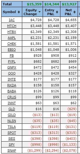 He traded over 20 stocks during the intraday. And he traded them well, most importantly.