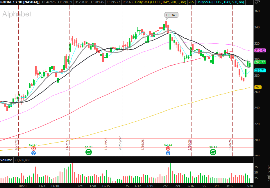 GOOGL: If GOOGL fails to reclaim and hold its 10 and 20-day, it would confirm a short-term lower high. If it displays relative weakness to the market / its peers, I like the R:R here for a fade back toward its 5-day. Not looking for a multi-day trade here at all – this would just be an intraday momentum short if the lower high and relative weakness confirm. If the market stabilizes, and GOOGL reclaims last week’s high – I’d be open to a swing long. Remaining open-minded and flexible in this environment is vital.