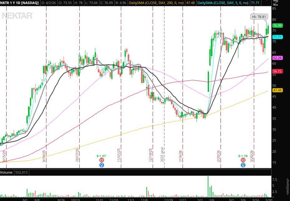 NKTR: Clear and obvious relative strength and outperformance. Similar to SNDK, I wouldn’t be surprised to see a notable breakout if the market stabilizes.