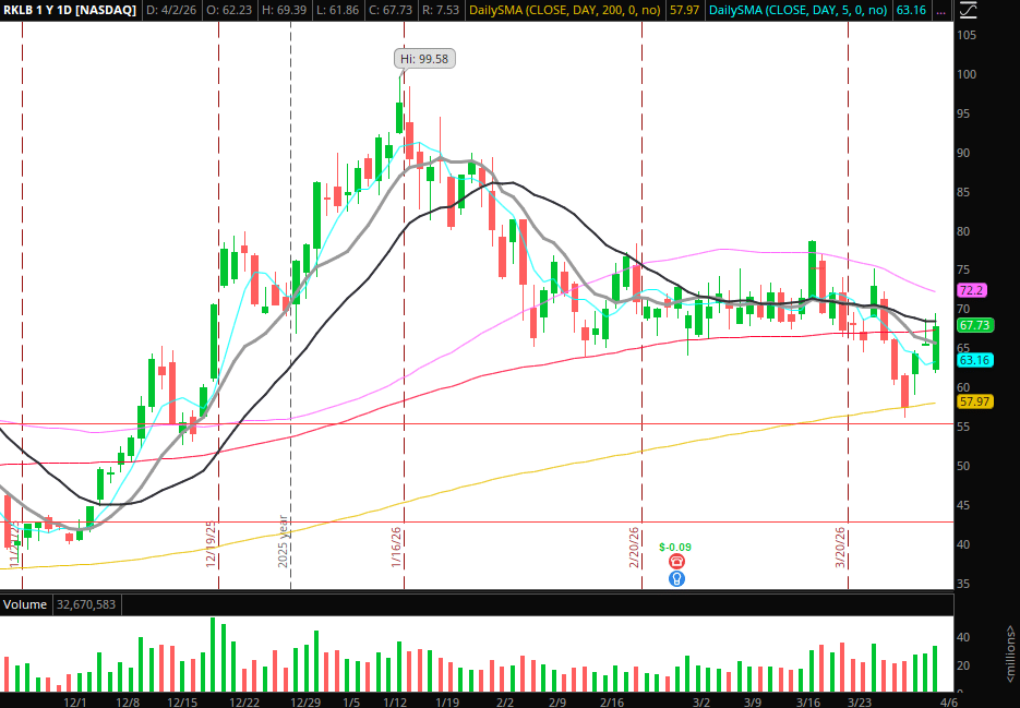 I’ll also be watching RKLB closely for signs of stabilization above its 10 and 20-day SMA and relative strength. If RKLB can firm up above its 10 and 20-day, I’ll look to enter a swing long against the 5-day potentially.