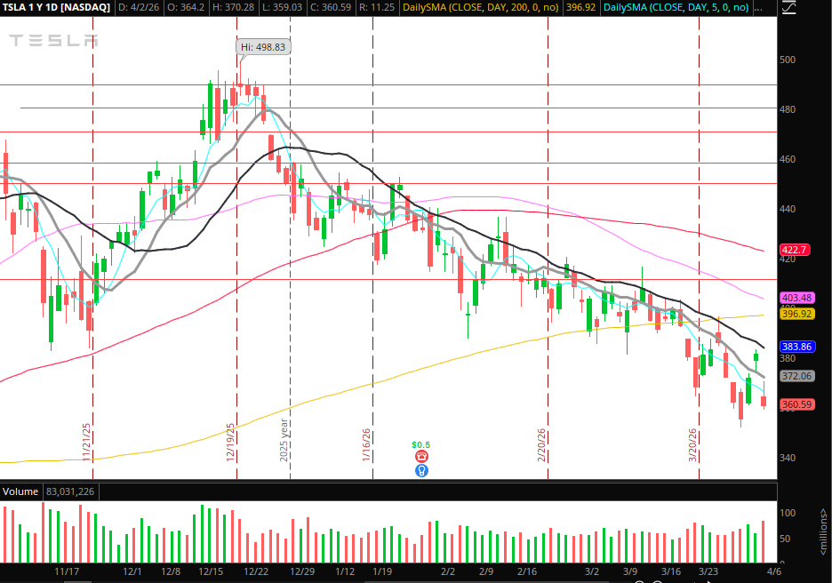 TSLA: Notable relative weakness on Thursday. If news comes out / the market fails on Monday, and TSLA is holding near Thursday’s lows, I’d look for intraday momentum to scalp on the short side.