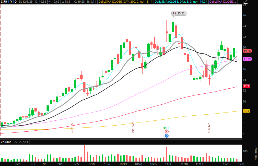 CIFR / IREN: Looking for relative strength and for last week’s resistance to be taken out to position long for a multi-day move.
