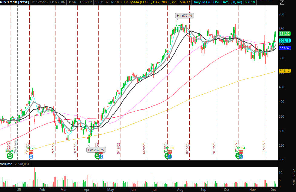 Breakout Forming in GEV: Same thoughts as I mentioned in my IA meeting—brilliant bull flag and looking to breakout.