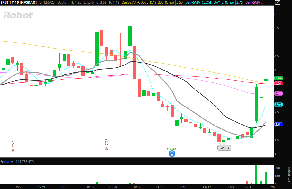 Pops to Short / Further Build and Continuation in IRBT: Fantastic swing long, which I closed out on Friday on the push toward $5 and extension from intraday VWAP. Now, after the significant selloff, I’d imagine longs are trapped for the time being. Therefore, I’d be open to shorting a push toward its 2-day VWAP near $4.2. Alternatively, if this consolidates and tightens its range for a few days, I’d be open to a re-entry on the long side if it breaks out on significantly lower volume than last week.