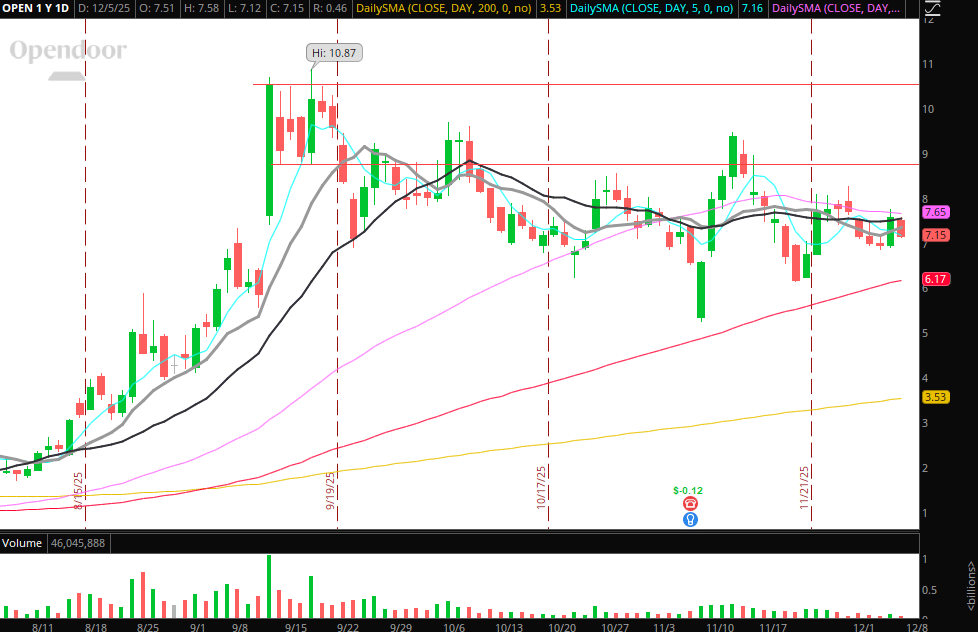 Monitoring OPEN: Similar to my thoughts last week, I am keeping OPEN on my radar given the tight bull flag that continues to develop on the daily.