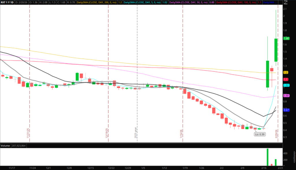 RXT: Great liquidity trap long opp on Friday. The higher the better now for a potential short. 1 such scenario would be a push on Monday into Friday’s highs and stuff / failed follow-through, for a short toward 2-day VWAP / trail rest against intraday VWAP reclaim—ideally, $2.2 – $2.5 before such an opportunity, though.
