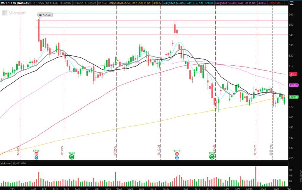 Continued Rel. Weakness in MSFT: I continue to see relative weakness on the higher timeframe in MSFT. As a result, if the market takes a turn lower on the week, MSFT would be a go-to name for momentum beneath its support near last week’s low.