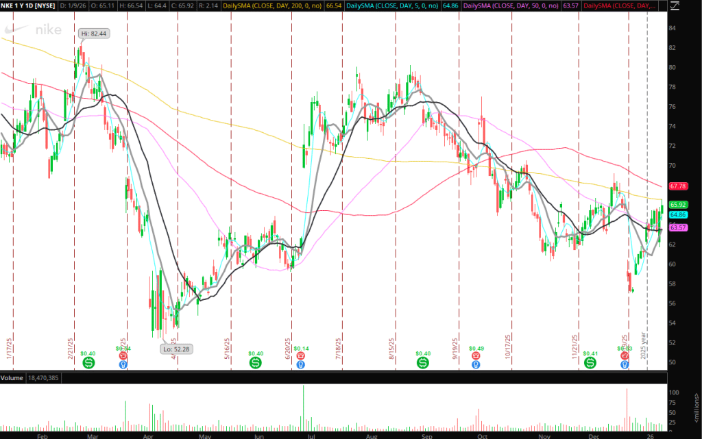 For example, if the market expects the outcome and rules against tariffs, one of my go-to stocks for the initial move would be NKE. Big-box retailers have been hit hard by tariffs. The initial headline and move could offer immense relief. My plan would be a breaking news entry long on NKE, initially trailing the 2-min prior low, with the rest against the 5-min prior low. As this IF/THEN is a part of the likeliest outcome, I’d also be open to flipping short for a potential sell-the-news if things get a bit out of hand on the initial bump higher.