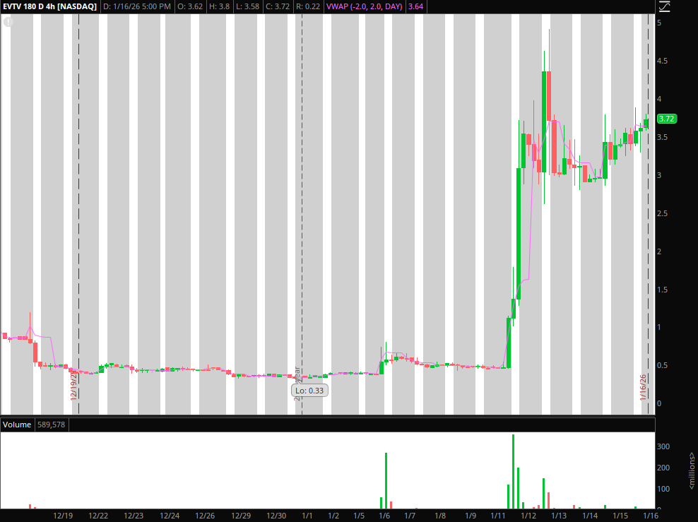 Liquidity Trap in EVTV / Failed Follow Through: Fantastic consolidation above day 1 high, over last week. Going forward, I will be monitoring this for unusual volume over $4, for a long entry against the LOD or consolidation support intraday. Thereafter, I’d look to quickly sell the long on any extensions and focus on flipping my bias to the short side once the crowd passes.