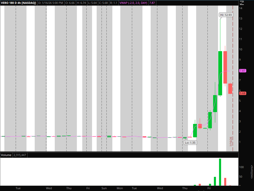 Pops to Short in VERO: Friday’s small-cap runner. Remember, with an IWM leading the market and following through on its breakout, small-caps are unsurprisingly catching many shorts off guard right now. With VERO, however, there is now a ton of overhead resistance – something that did not exist on day 1. Therefore, if the stock pushes back into $8+ and fails, I will look to short against the HOD. I’ll add, on that note, while I may have scaled on the short side for such plays in the past, nowadays I wait until there is a clear level to trade against before initiating a short. In a tape like this, things can push further than you think, especially if everyone is trying the same thing.