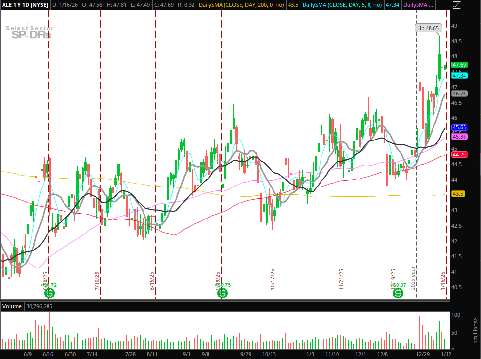 XLE: Same thoughts as I went over in my recent IA meeting; I am continuing to monitor the sector and leading names for a multi-month swing long entry should levels confirm.