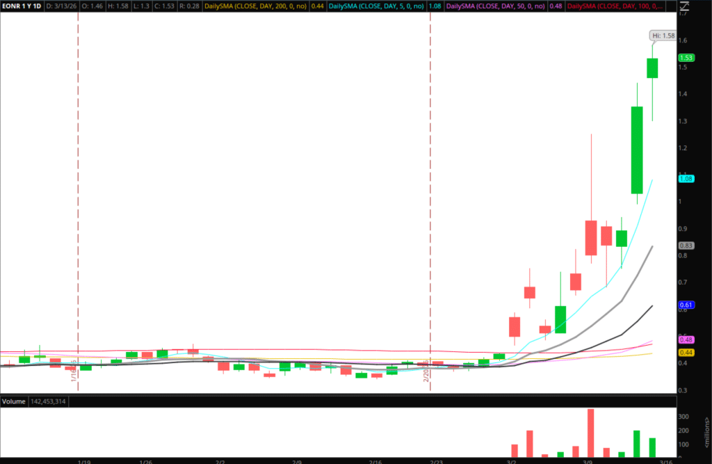 EONR – I’ll be focused on and failed reclaim attempts toward $1.5-$1.6. If it pops back into some resistance from Friday fails, I’ll position short against the intraday HOD for a multi-day swing potentially.