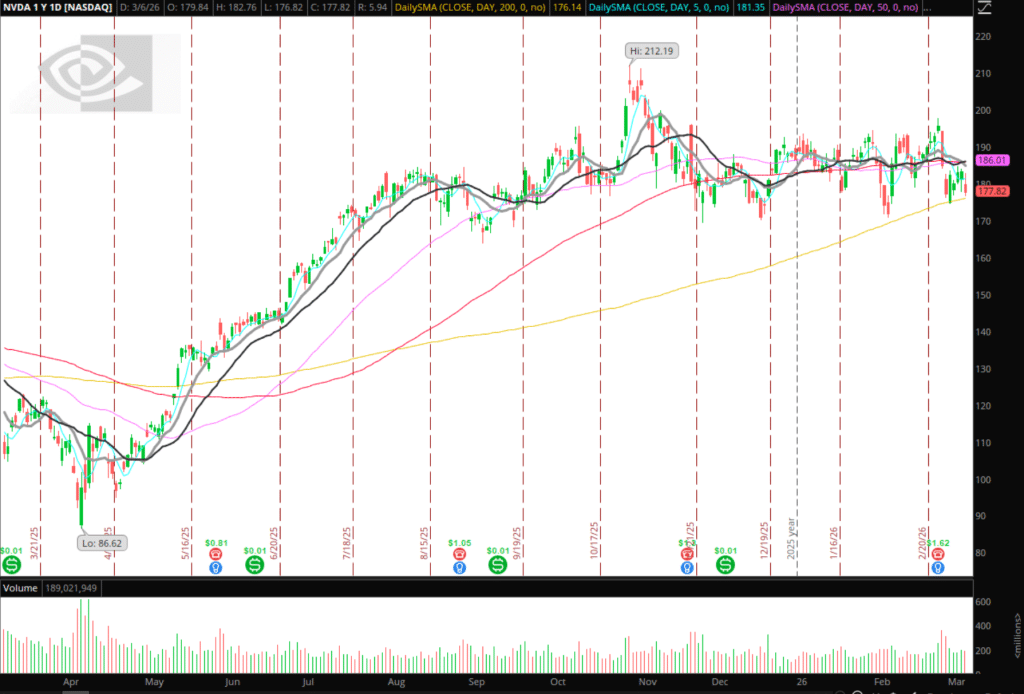 Whilst Oil will be the primary focus for the beginning of the week, I’d also like to add in NVIDIA. I’ll be paying close attention to NVIDIA’s 200-day SMA and last week’s low. Not only might there be a trade there, but if NVIDIA takes out last week’s low AND its 200-day SMA, I’d find it hard to believe the market stays within its range.