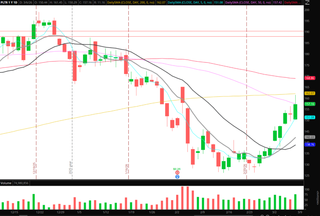 Palantir / Software Short: A nuanced idea given the rotation and headline risk right now that exists in the market. But all things being equal, I like IGV and many of its top holdings, like PLTR, on the short side this week. Why? IGV has made a significant move off its oversold low. It’s up nearly 9-days in a row. PLTR has followed suit, recovering toward its 50 and 200-day moving averages. On Friday, the 200-day held up as resistance. I’d take action on this idea if I notice some weakness in software names, and any attempts to reclaim upper-range levels from Friday fail. I’d be open to a swing short with a HOD stop.