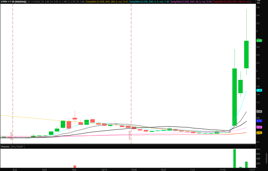 CYPH: Perpetual squeezer and solid liquidity trap that played out on Friday. $3.4 is now the central zone of resistance and a failed follow-through potential area to watch. If we push into that zone and trade above/below and fail on re-tests, I’d look to join the trend lower against the most recent lower high. Alternatively, if this traps and reclaims $3.4 +, I’d be hands off and wait for a blowout to the upside before considering a short.