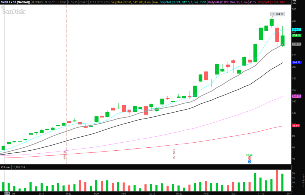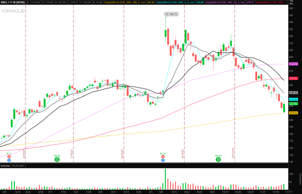 Just a fantastic opportunity on Friday, one which we spoke about ahead of time in IA, where I briefly mentioned names like ORCL and NBIS. Why those names in particular, along with several others? RSI had stepped into deep oversold territory, and prior leaders began to capitulate to the downside, without any relief bounces, making them prime for a relief bounce. Especially so if the market were to gap down, as we saw on Friday. Just an excellent V recovery on Friday, and one certainly worth studying in further detail.