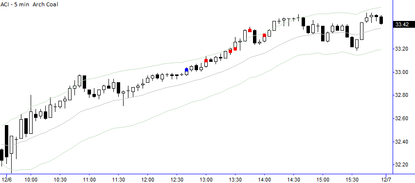 One of the advantages of sitting on a trading desk is that you have a lot of people processing information. People knew I was looking for Coal stocks… I had a few candidates on my list, but one of our trainees pointed out that not only was ACI screaming on the SMB Radar, but it was also building a pretty attractive base for a breakout. Once you’ve done that much work, the rest is easy, and then it’s mostly a matter of figuring out where to take your profits.